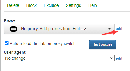 第二步、生成动态IP或者API获取的代理IP,点击edit的按钮,将其添加到插件中。